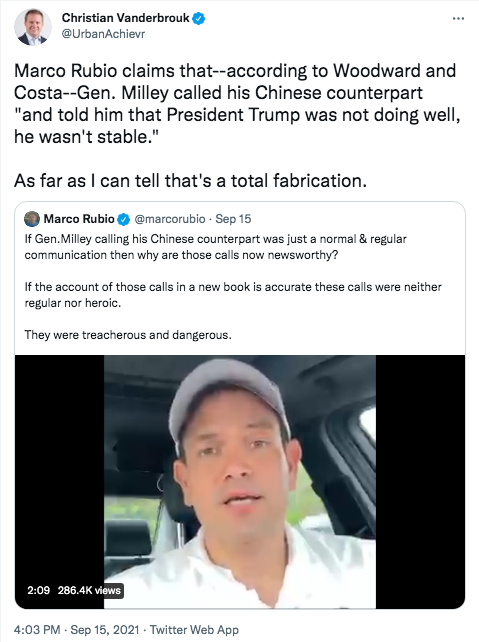 Rubio used greatly exaggerated evidence to demand President Biden fire General Mark Milley, but both Republicans and Democrats are calling him out on his hypocrisy.